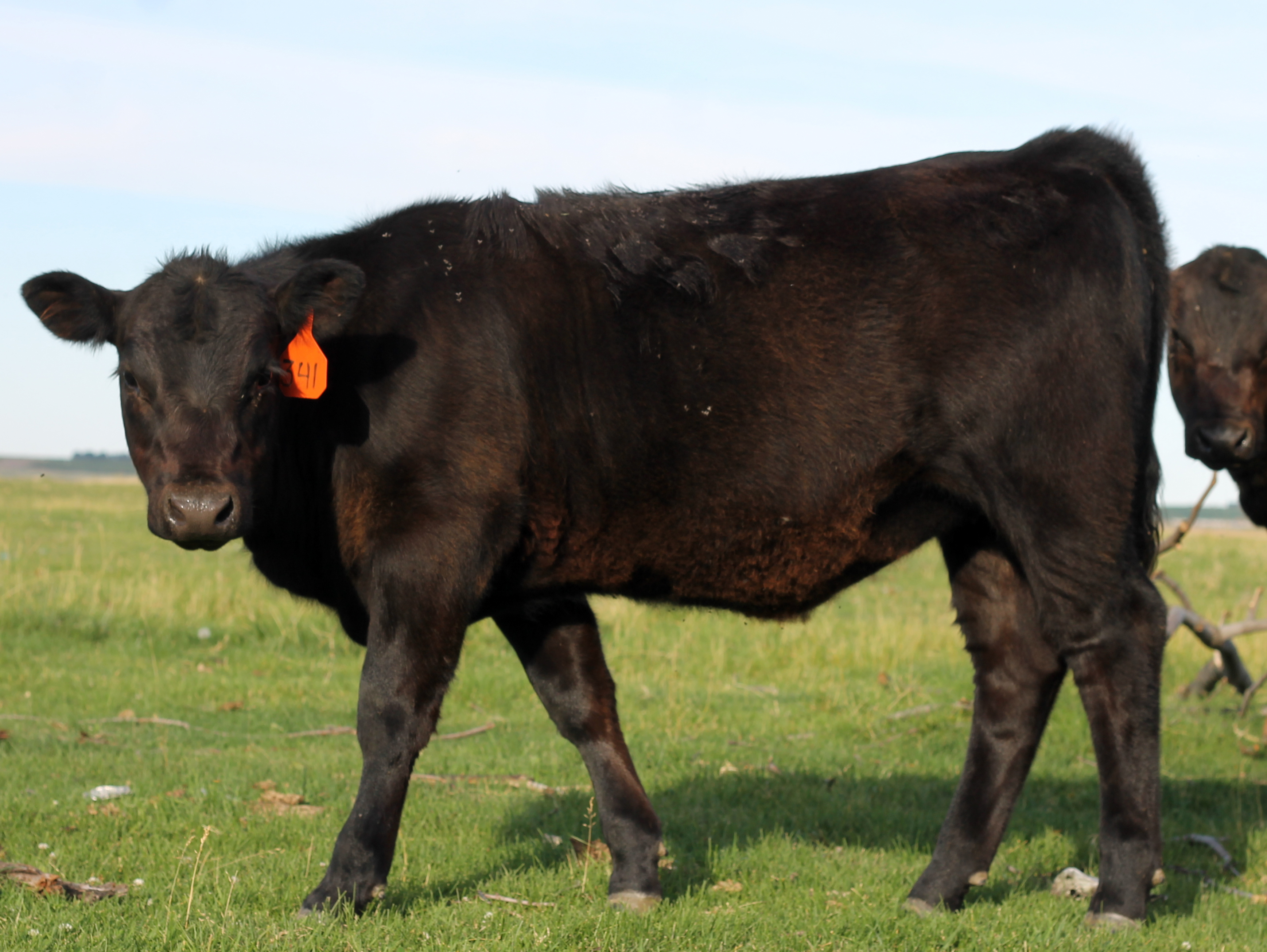 341 is a heifer by Hoover Dam. Hoover Dam is The people’s choice of bulls. Hoover Dam has proven genetics – predictable calving ease, eye appeal and superior thickness, with exceptional docility. HOOVER DAM offers proven calving ease, eye appeal, power and thickness in a moderate framed package. Deep bodied, moderate framed, easy fleshing progeny with tremendous structure and eye appeal have made HOOVER DAM into a featured sire in sales across the country, as well as a semen sales leader. 341′s dam is out of Exar Expand 1241, we really like our Expand, they are bid, deep bodied maternal cows. Expand was the second highest selling bull of his calf crop at the Express Ranches bull sale and the top-selling bull of the Toebben Triple T Dispersal, Expand ranks among the top 30 proven sires in the Spring 2006 NSE Report for IMF EPD offering the Number 3 YEPD, the Number 4 WEPD and the number 3 $B among proven sons of New Design 1407. Expand ranks among the top 1% of active Angus sires for $B index and ranks in the top 3% for YEPD, IMF and $F index while ranking in the top 5% for WEPD and in the top 15% for $G and the top 20% for $W index. This heifer was born December 20th.