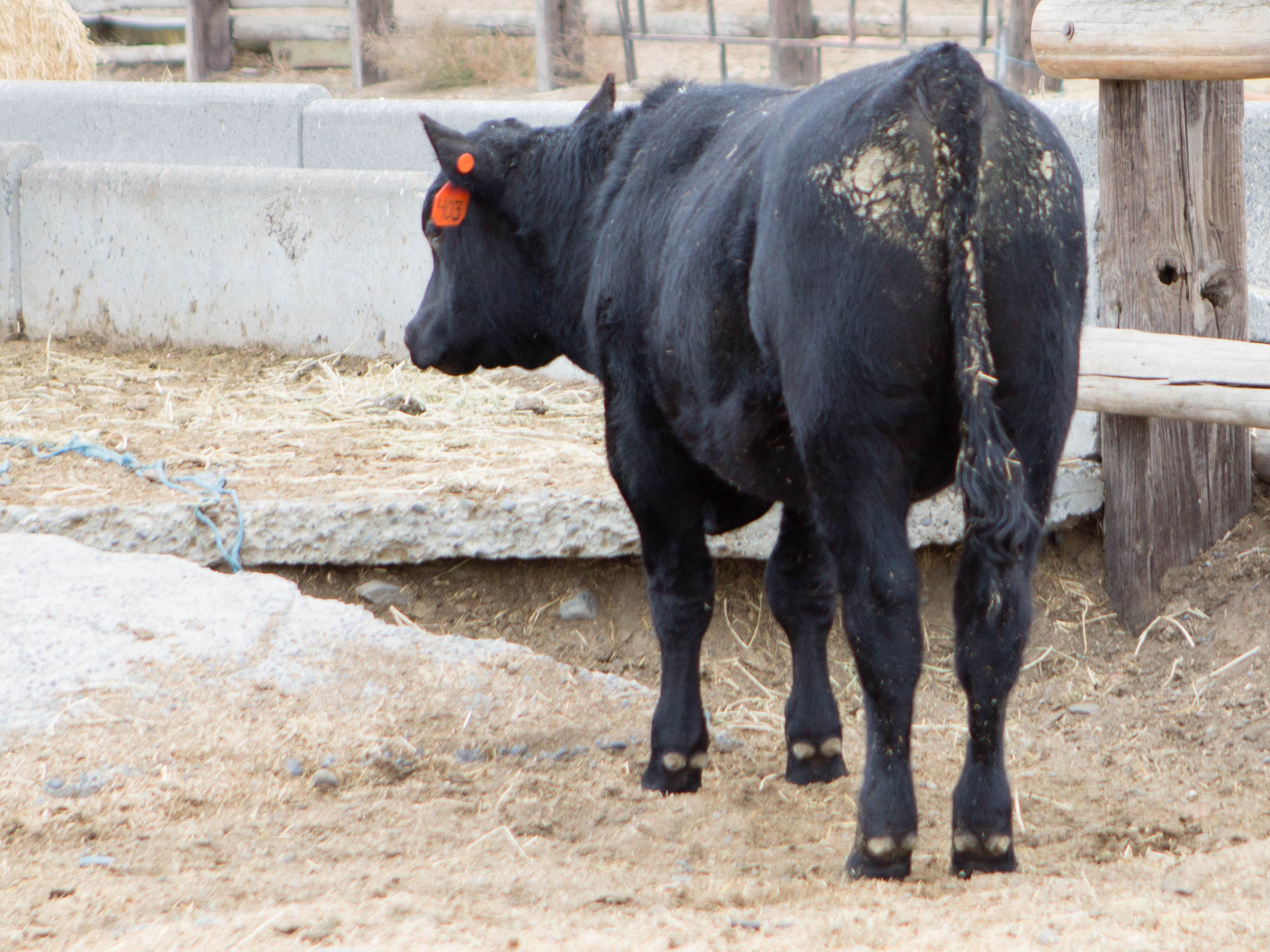403 is a fancy bull calf by Connealy Confidence who is out of Connealy Tobin and Becka Gala of Conanga 8281. Confidence is the high-selling bull from the 2011 Connealy sale and with his 13 for CED, 40 $W and nearly 80 $B, he’s one of the most unique bulls available in the Angus breed. His blend of style, calving ease potential, genomically-enhanced carcass numbers and a Thunder X Bextor dam that’s truly a model Angus female make Confidence deserving of heavy sampling. 403’s dam is a daughter of A&B Krugerrand 1200. He was born 1/7. He has BW of 76 lbs and a weaning weight of 705 on 9/20 and he was not on creep feed $3500