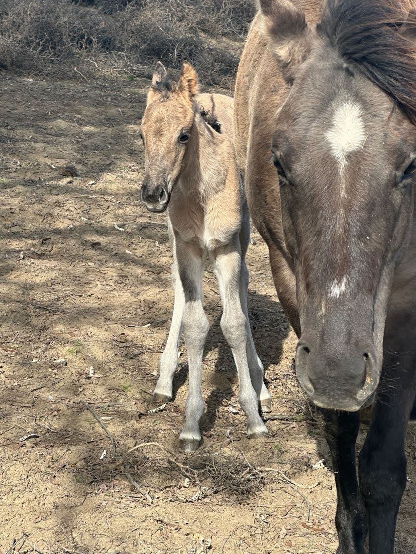 No new foals on Wednesday, however Jitter was out in the desert eating grass and made Toni look for her and try to get her in. Jitter likes to crawl through fences so she would rather be a pain in the butt and crawl through a fence than go through a gate. Toni and Kade pulled hair on Fancy Like to send in a DNA test. They also worked on Fancy for awhile. Since Kade wants her to be a future calf horse they were picking up her feet with a rope and desensitizing her. Toni had court again. Then she had to head over to stay with Grandma.