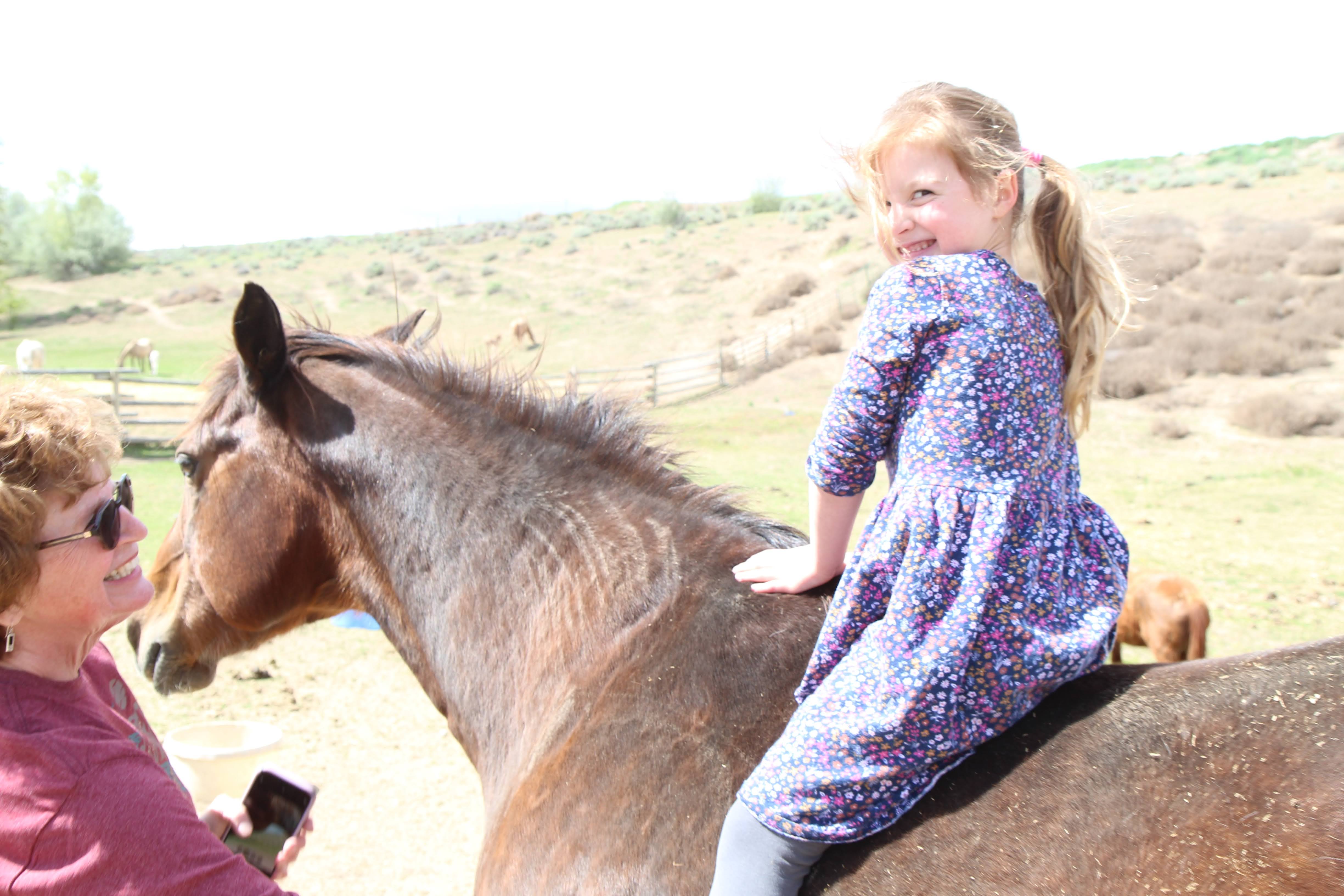 Monday is the late start for school day, but always an extra early day, get a jump on the week for everyone else. Dad and Steve delivered a bull to Mary Cox in Nespelem. They had a blow out on the way home on the red trailer. Dad decided it needed 4 new tires. Aelina got the letter I mailed her on Monday, I am waiting for her to mail one back to me now. She puts more artwork on hers, I just put a pic on mine. Toni stayed with grandma on Monday night. Anna and Pepper had done up a flower arrangement in FFA for Grandma that Grandma has proudly displayed on her kitchen table, she is quire proud of her granddaughters. We had some people stop by to look at the horses on their way home from a wedding. So we just wandered around at the house and looked at those. The gal had flip flops on, so I was little concerned with keeping her feet intact.