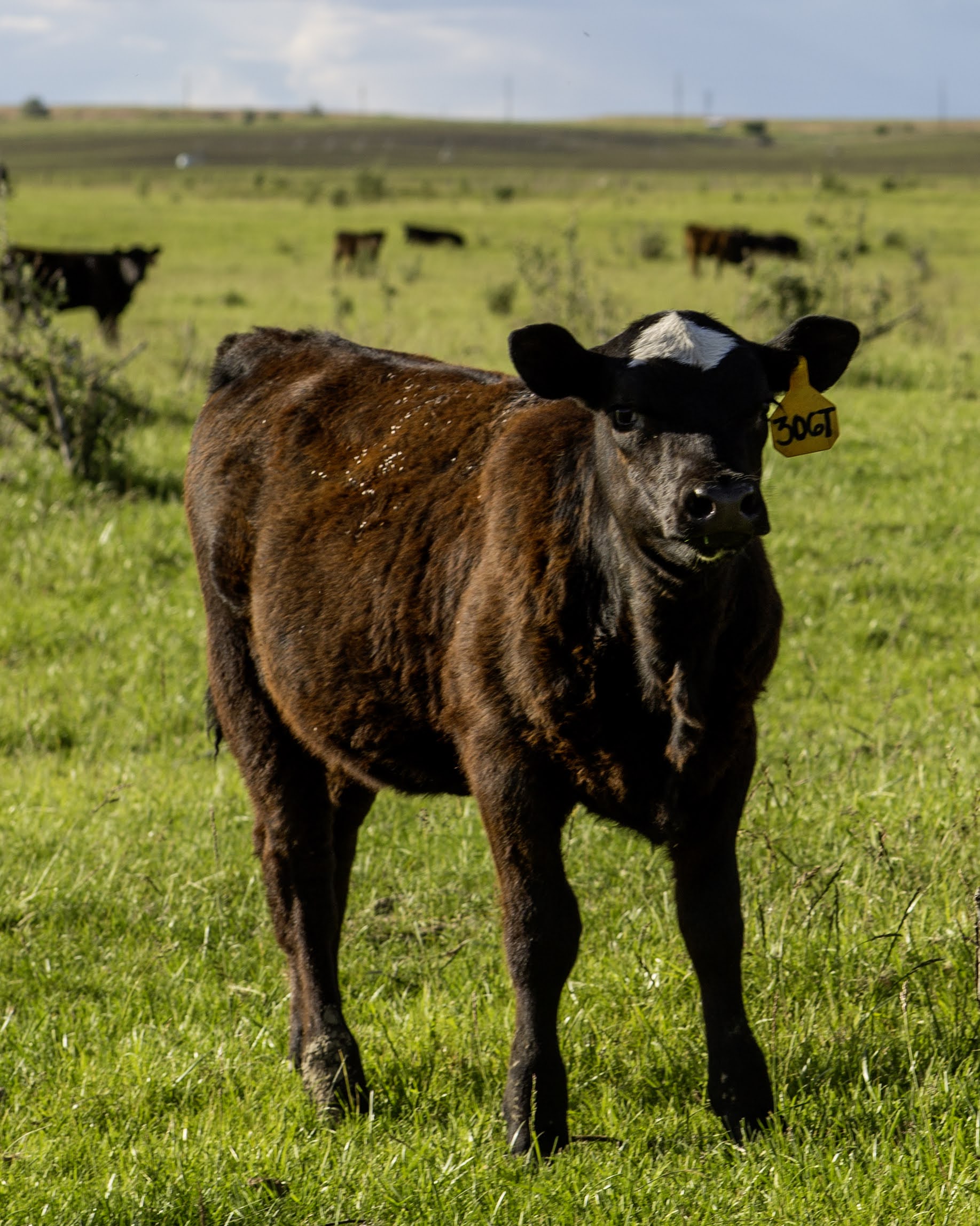 306T is a fancy black Hereford heifer with a splash of white across the top of her head. She is by BB 8165 DOMINO 2004, a deep bodied, red eyed Hereford bull from BB Cattle Co. Her dam, Bk Horseshoe Queen 151, is by Connealy Emerald, who is the top selling bull from the 2019 Connealy spring bull sale where he was admired for his soundness, body mass and performance, combined with a 143 IMF ratio and a 117 RE ratio. He is exactly what Angus breeders are seeking right now, multi-trait balance with strong maternal and phenotypic quality. She was turned out with Angus bulls on 2/16/25.